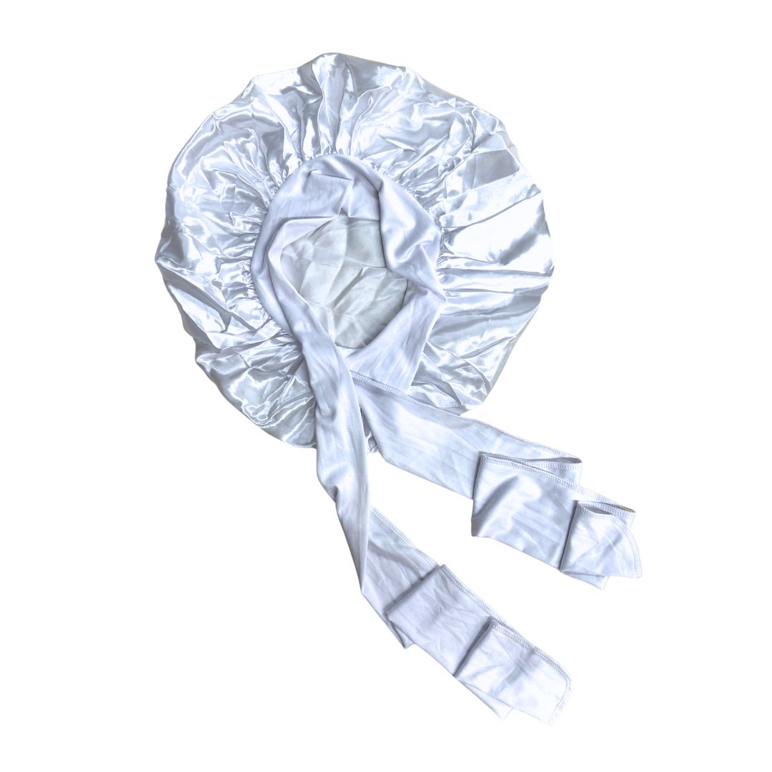 Tämä sidottava satiinimyssy on täydellinen apuri hiusten hellävaraiseen suojaamiseen yön aikana. Sileä satiinipinta ehkäisee hiusten katkeilua ja takkuuntumista sekä auttaa pitämään kiharat, letit ja kampaukset siistinä vielä seuraavana aamunakin.